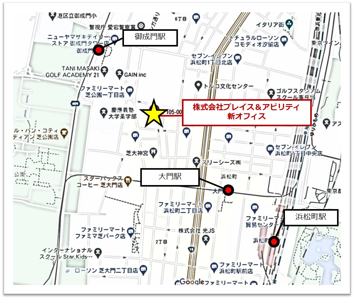 株式会社プレイス&アビリティは、本社を以下の所在地に移転しますので、お知らせいたします。これを機に、さらなる社業の発展に精励し、皆様のご期待に沿えますよう鋭意努力いたす所存でございますので、今後とも倍旧のご支援とご厚誼を賜りますようお願い申し上げます。